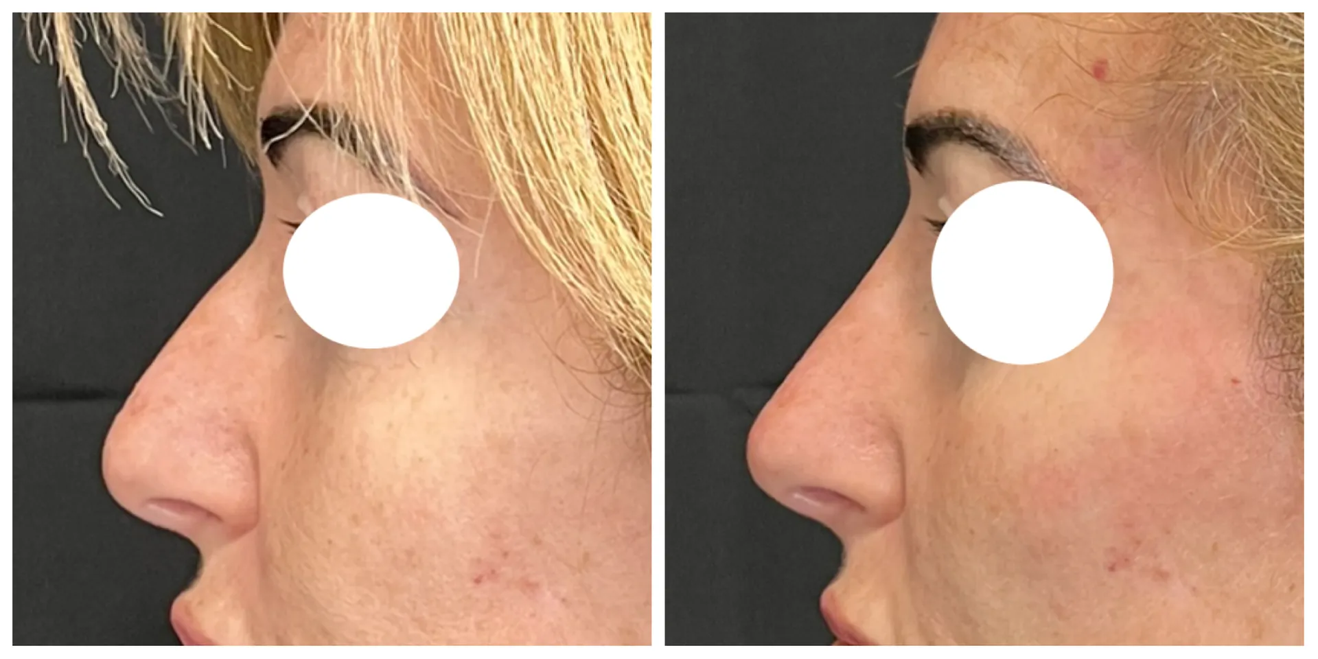 Dans ce cas, la patiente souhaitait remonter la point de son nez, l’affiner et corriger la bosse du nez sans chirurgie.